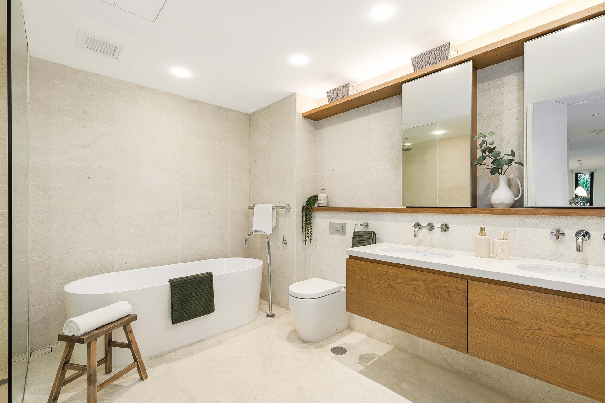 This two bedroom residence is private, light filled and particular attention given to the details such as high ceilings and floor-to-ceiling windows.
