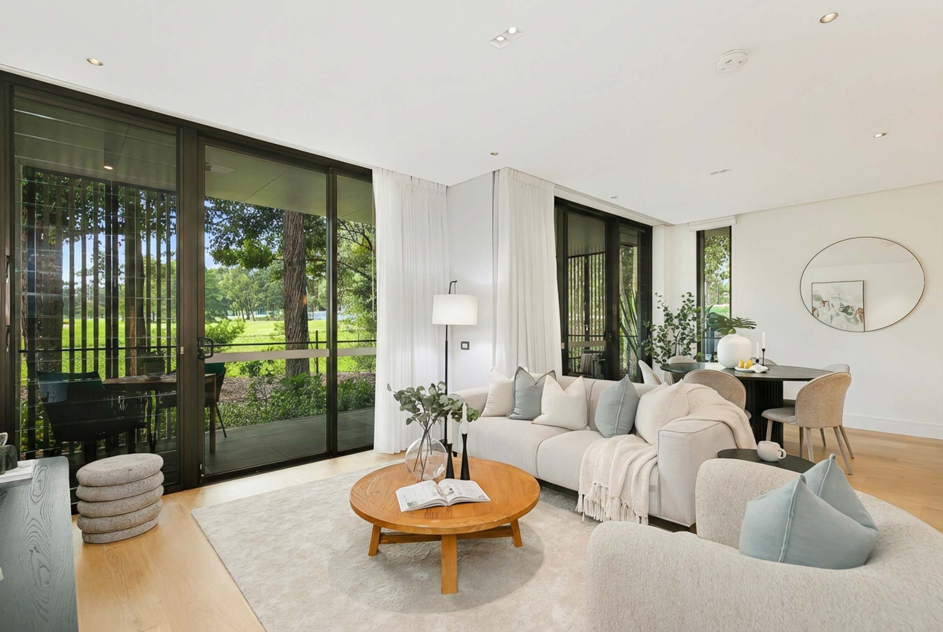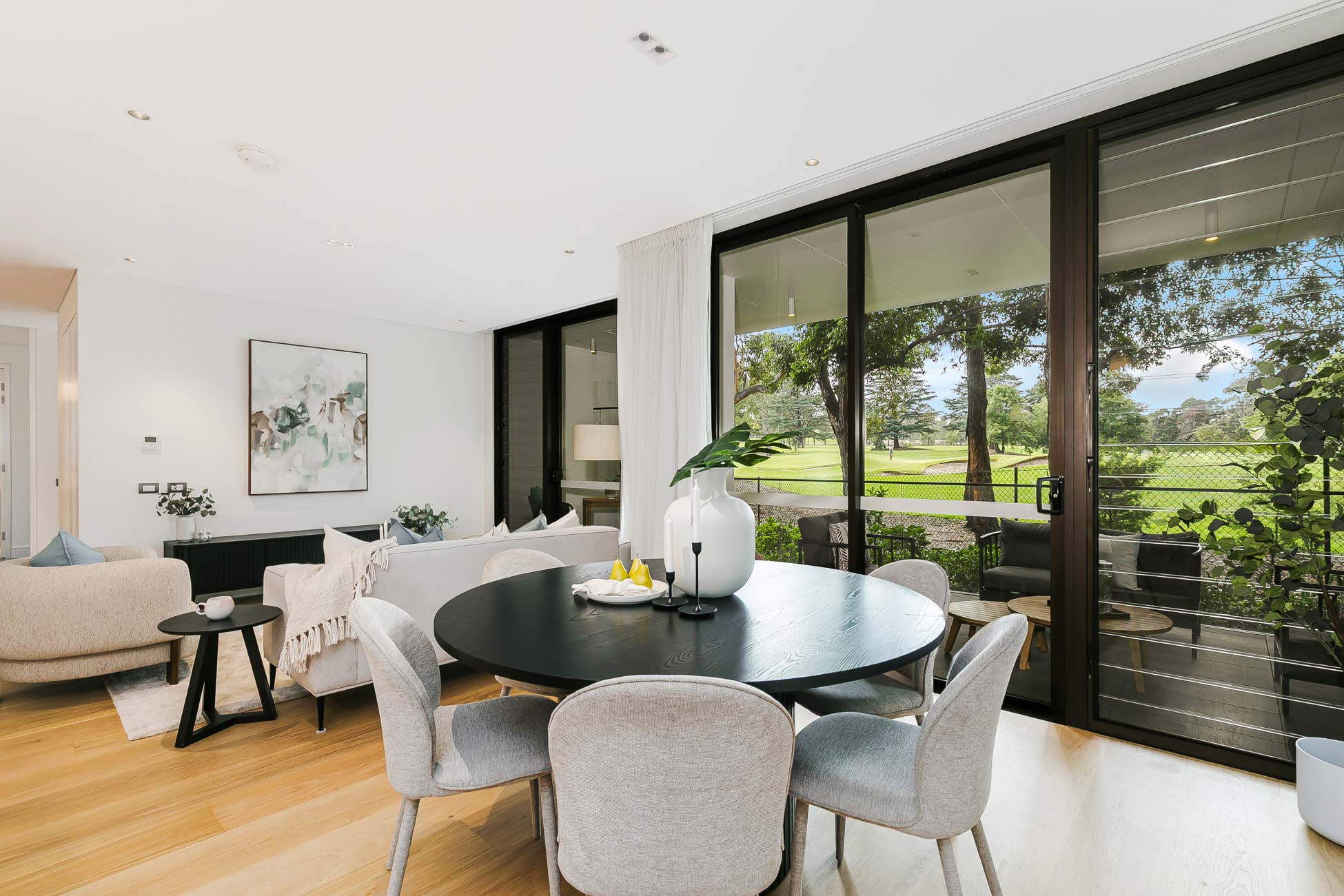 - Floor-to-ceiling glass sliders capture mesmerising golf course views, offering the perfect balance of indoor/outdoor living.